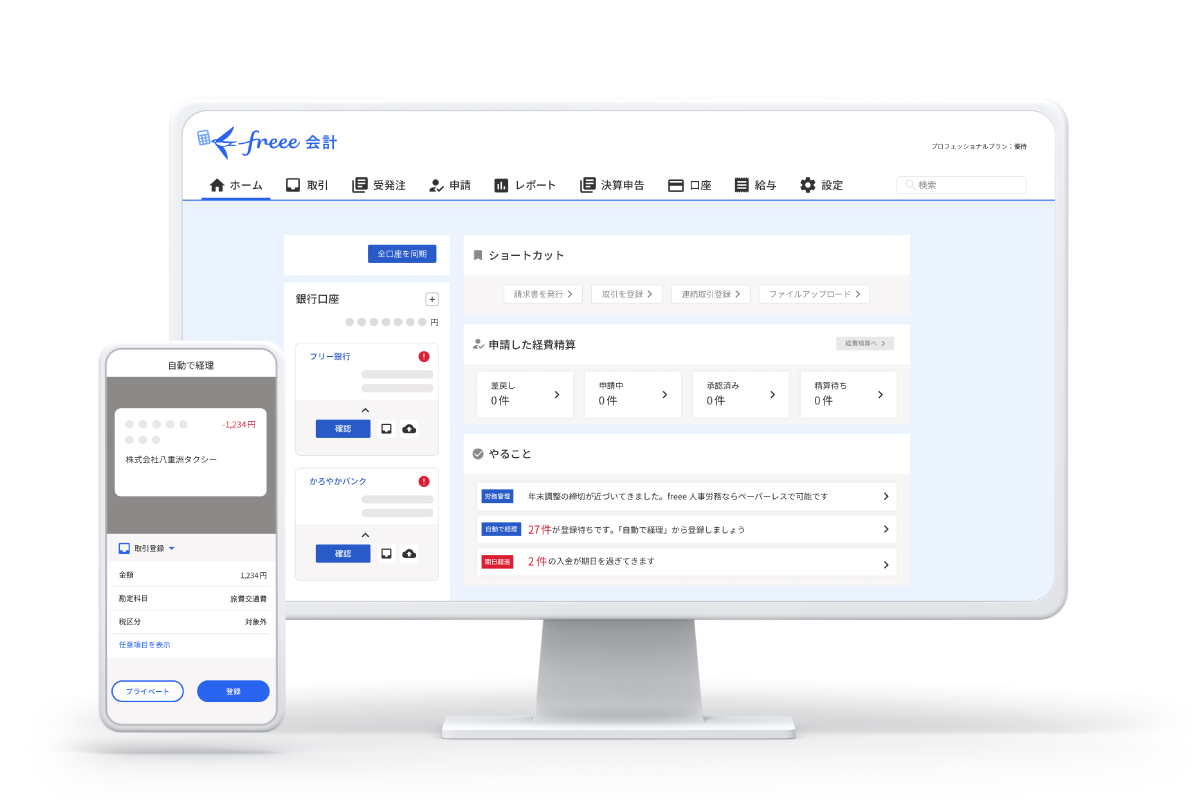freee会計で書類発行・銀行と連携すれば、