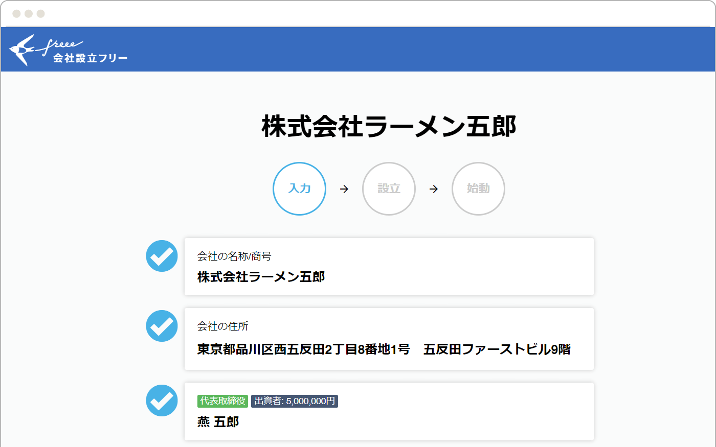 freee会社設立により、スムーズな手続きができた