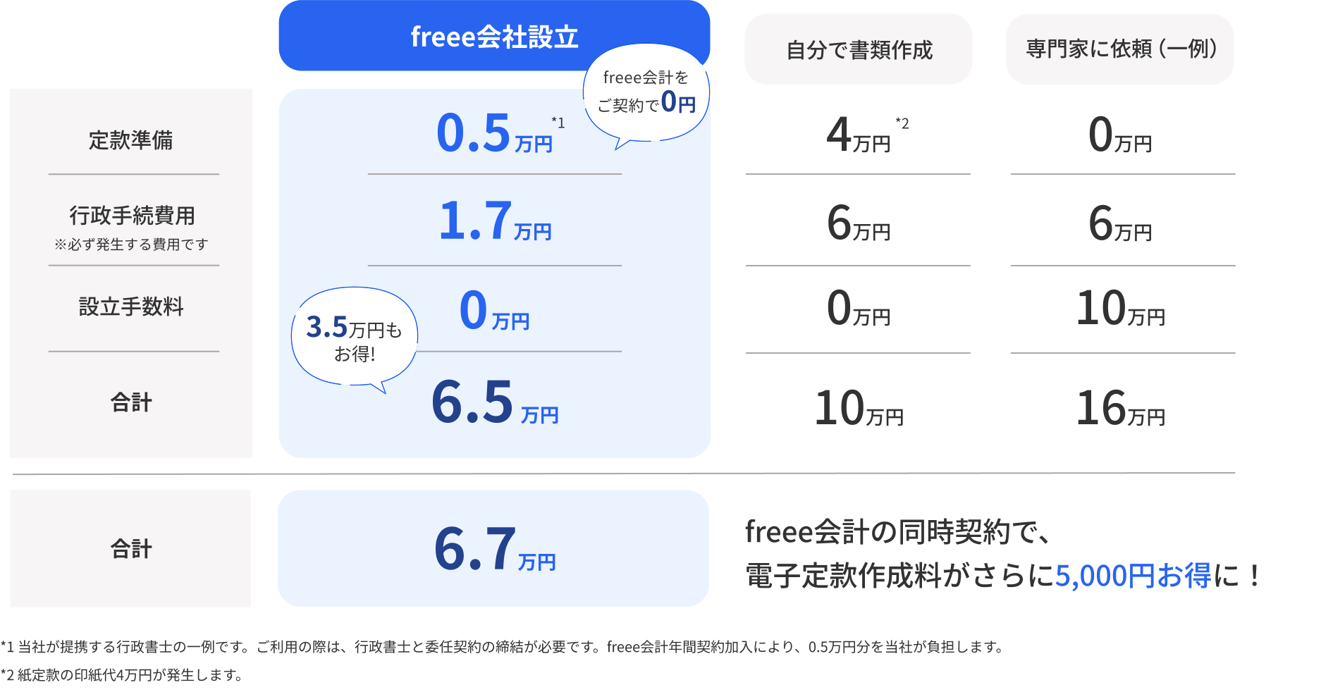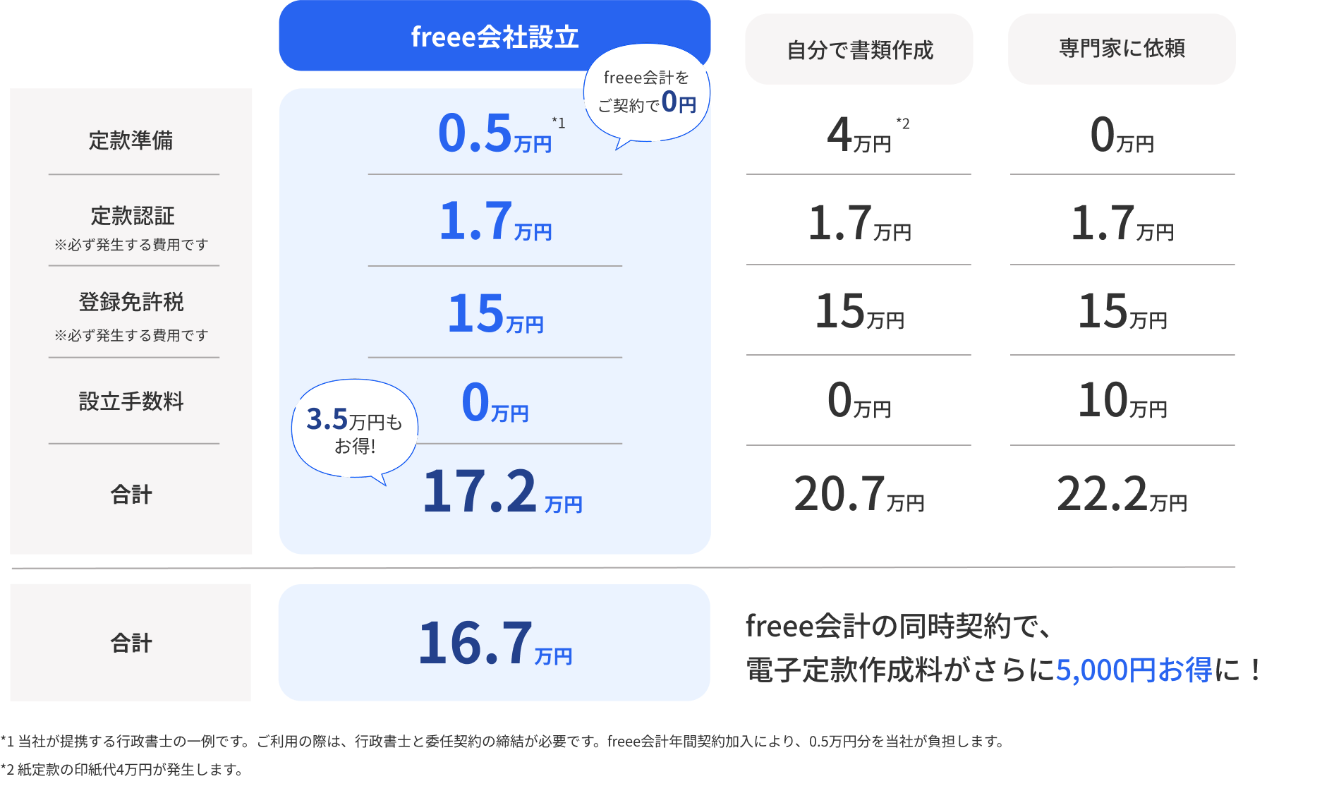 費用を比較 会社設立にかかる