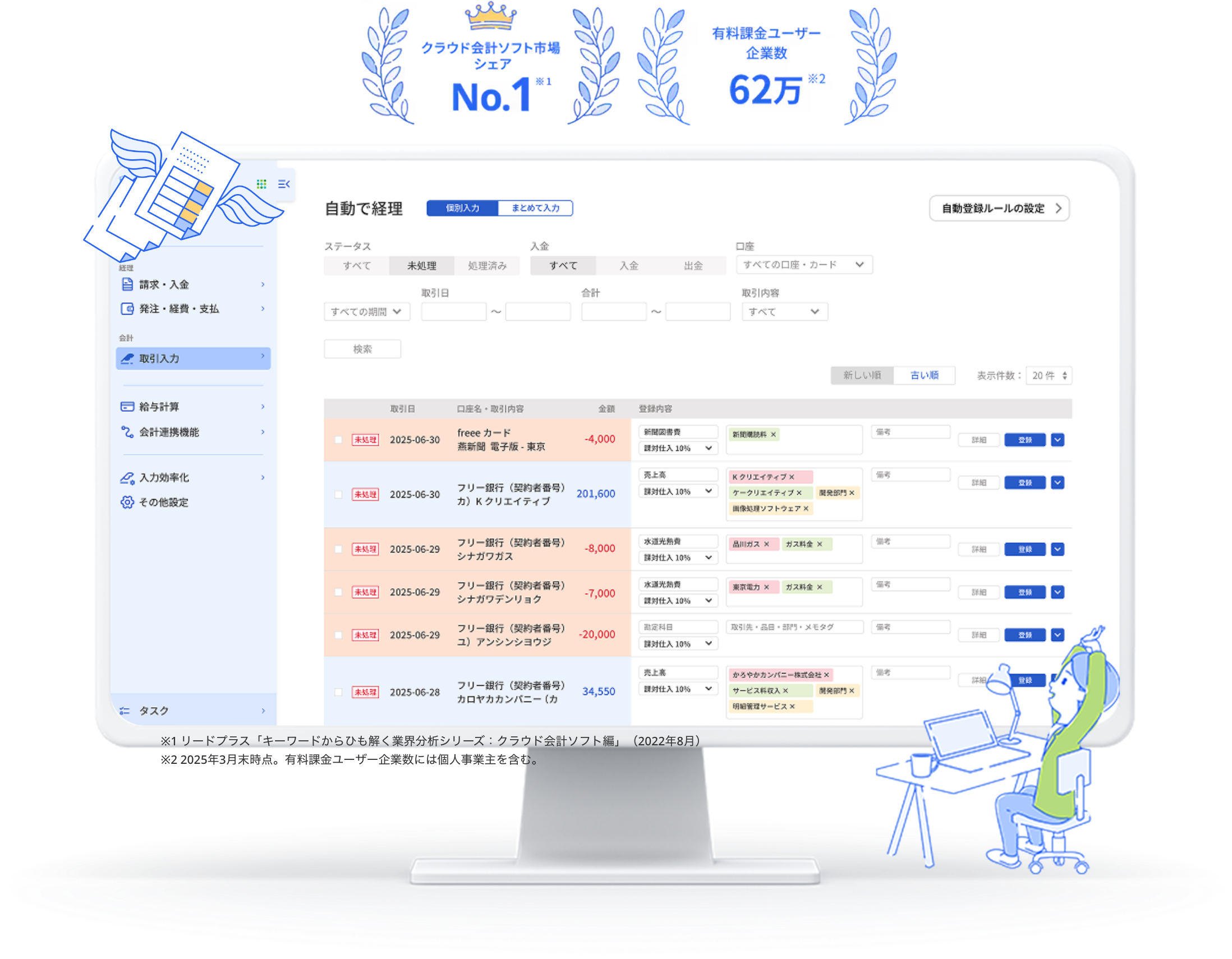 帳簿に自動反映!