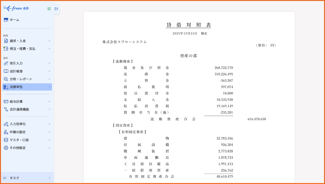 決算に必要な書類を自動生成