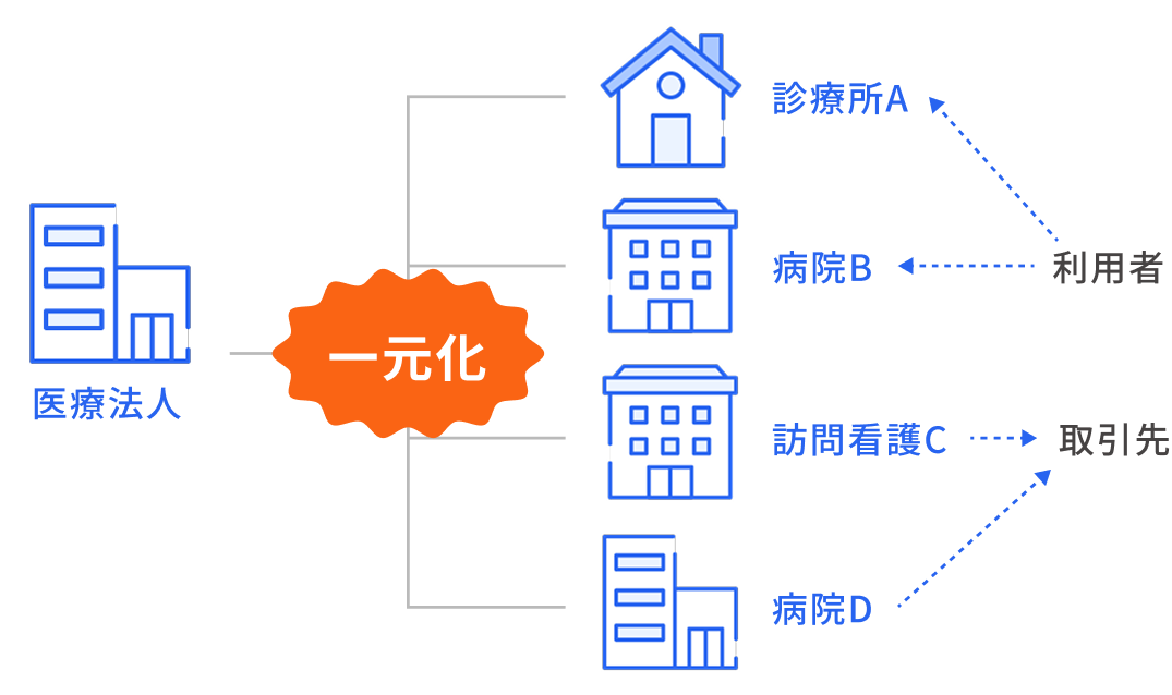 会計処理を一元化病院‧診療所‧介護施設など、拠点別の会計