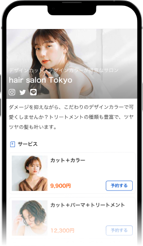 自分だけの予約サイトが完成いくつかの質問に答えて、お店のメニューを設定するだけで、あっという間にオリジナルサイトが完成!スマホひとつで、かんたんにネット予約をはじめられます。