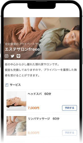 自分だけの予約サイトが完成いくつかの質問に答えて、お店のメニューを設定するだけで、あっという間にオリジナルサイトが完成!スマホひとつで、かんたんにネット予約をはじめられます。